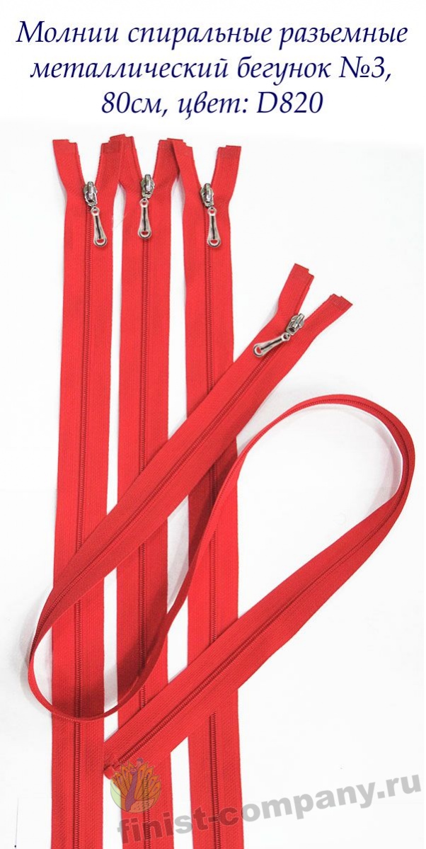 Молнии спиральные разъемные с металлическим бегунком тип №3 80см