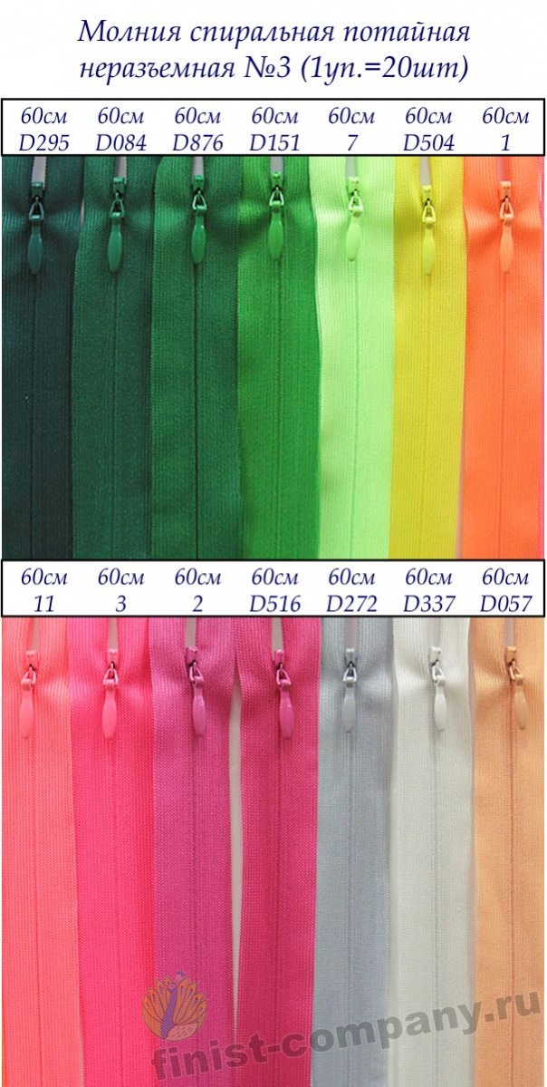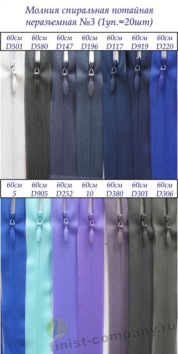 Молнии спиральные потайные неразъемные №3