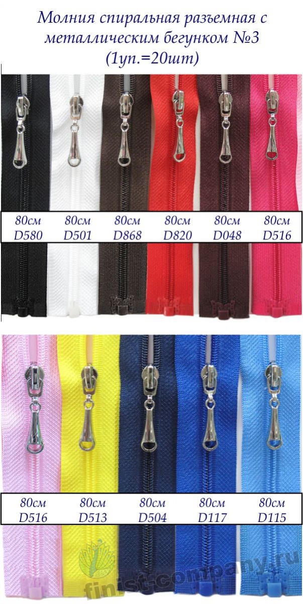 Молнии спиральные разъемные с металлическим бегунком №3