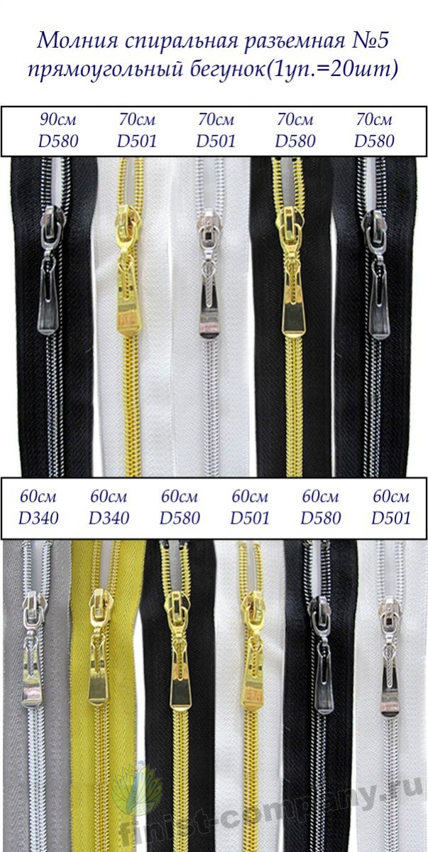 Молнии спиральные разъемные №5