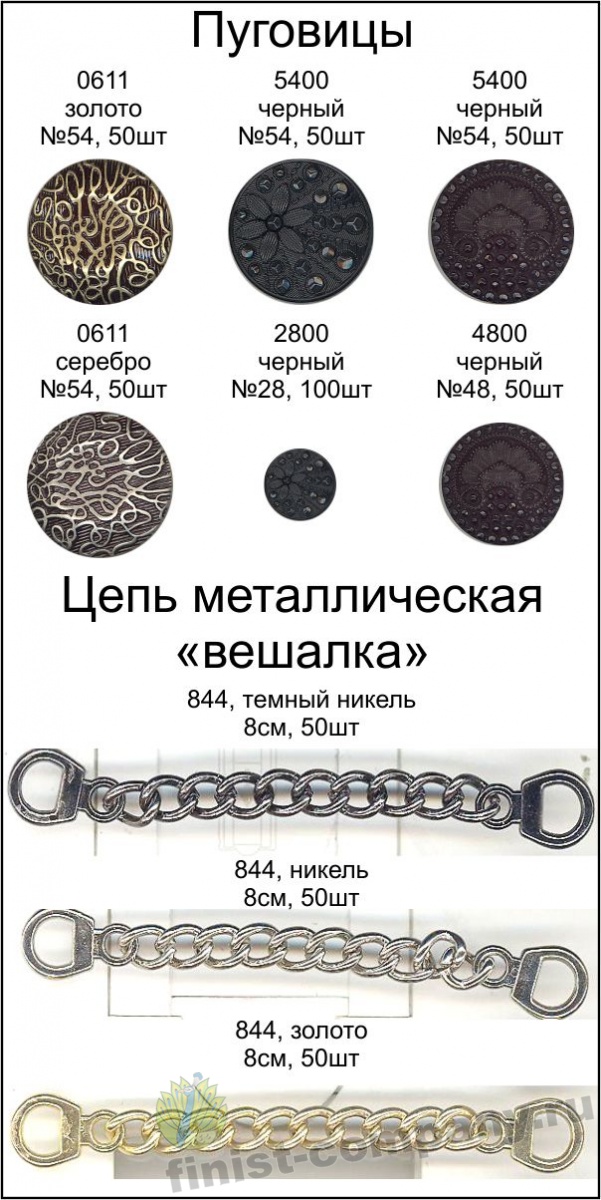 Давняя и неизменная часть истории костюма - пуговица - это и "скромная статистка", и яркая деталь на страницах многих произведений художественной литературы, отражающая не только веяния моды, но и социальное положение, вкус, воспитание.В ассортименте: пуговицы из натуральных материалов, пластиковые, металлические, матовые, глянцевые, декоративные, шубные и др.