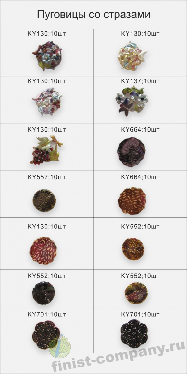 Давняя и неизменная часть истории костюма - пуговица - это и "скромная статистка", и яркая деталь на страницах многих произведений художественной литературы, отражающая не только веяния моды, но и социальное положение, вкус, воспитание.В ассортименте: пуговицы из натуральных материалов, пластиковые, металлические, матовые, глянцевые, декоративные, шубные и др.