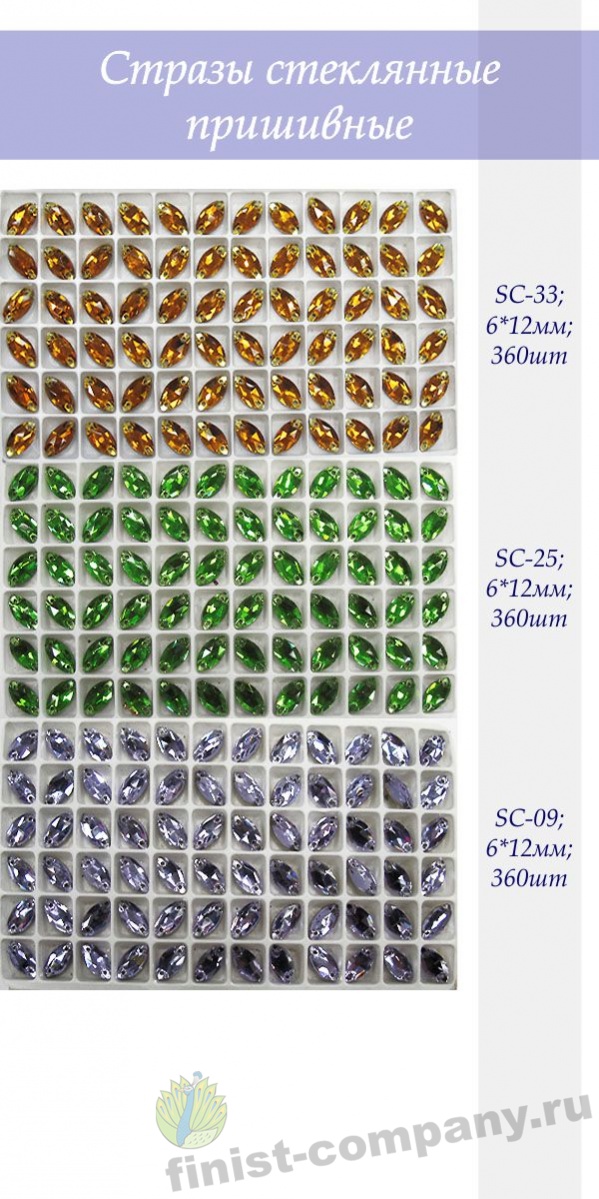 Стразы стеклянные пришивные листик