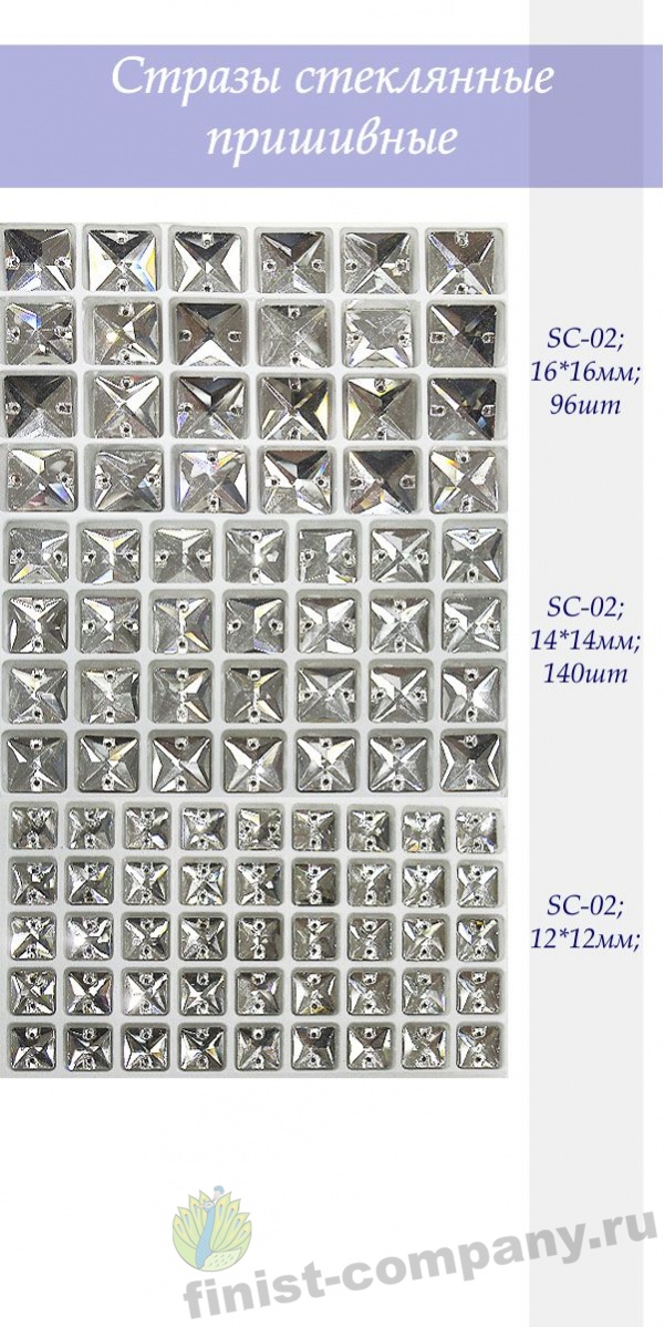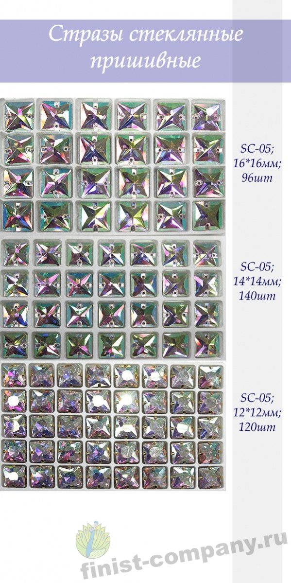 Стразы стеклянные пришивные квадрат